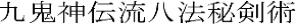 ist legitimer Nachfolger der fogenden neun Ryuha (Schulen) Bis auf Kukishiden Ryu sind alle